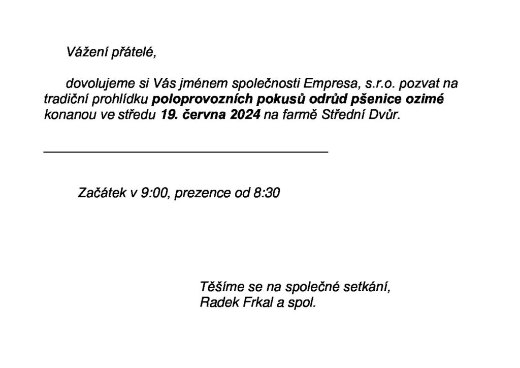 Naše pole, Zbýšov18 června, 2024 – 19 června, 2024 PD Empresa, farma Střední Dvůr19 června, 2024